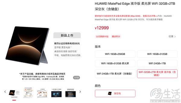 不久前,华为方面推出首款鸿蒙二合一平板电脑MatePad Edge,兼具平板与笔记本电脑的体验的这款机型也吸引了众多消费者的关注。近日MatePad Edge顶配的液冷版本也已正式开售,其32GB+2TB存储组合版本的价格为12999元,在同类机型中也有着极为突出的产品力。